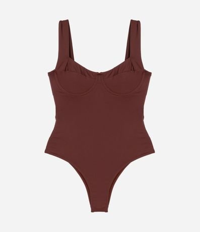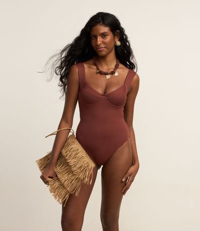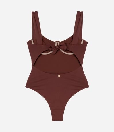 Ref: Maiô meia taça com alças largas fixas (sem regulagem) e amarração nas costas.