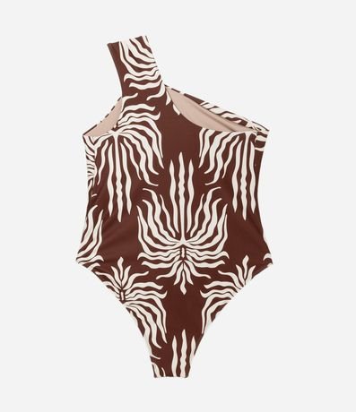 Maiô Ombro Único com Estampa Folhagem Curve & Plus Size