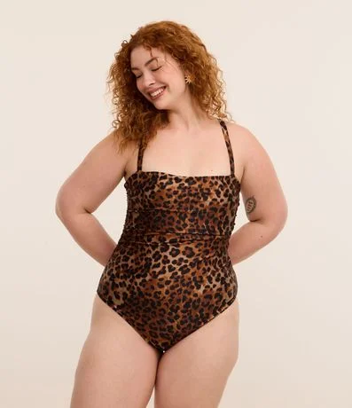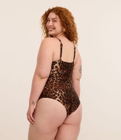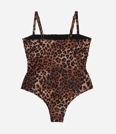 Ref: Maiô confeccionado em microfibra estampada de oncinha. A peça tem decote reto e alças paraleleas reguláveis.