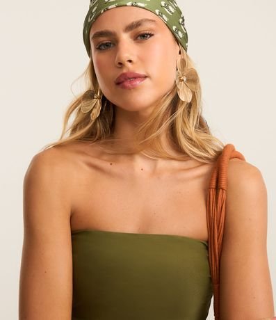 Maiô Sem Alça em Microfibra com Busto Drapeado