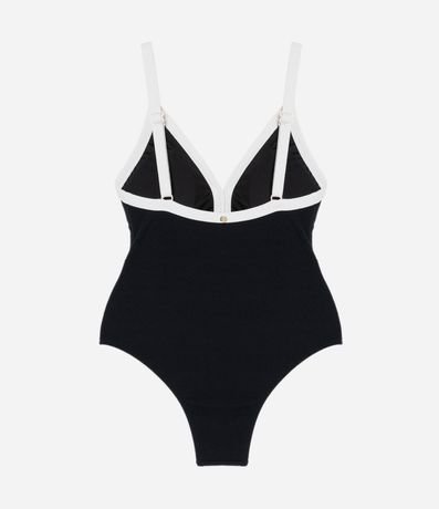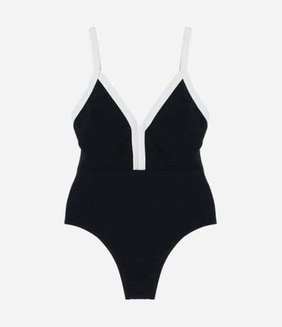 Ref: Maiô confeccionado em microfibra texturizada sem estampa. A peça tem decote V, viés contrastante e alça regulável.