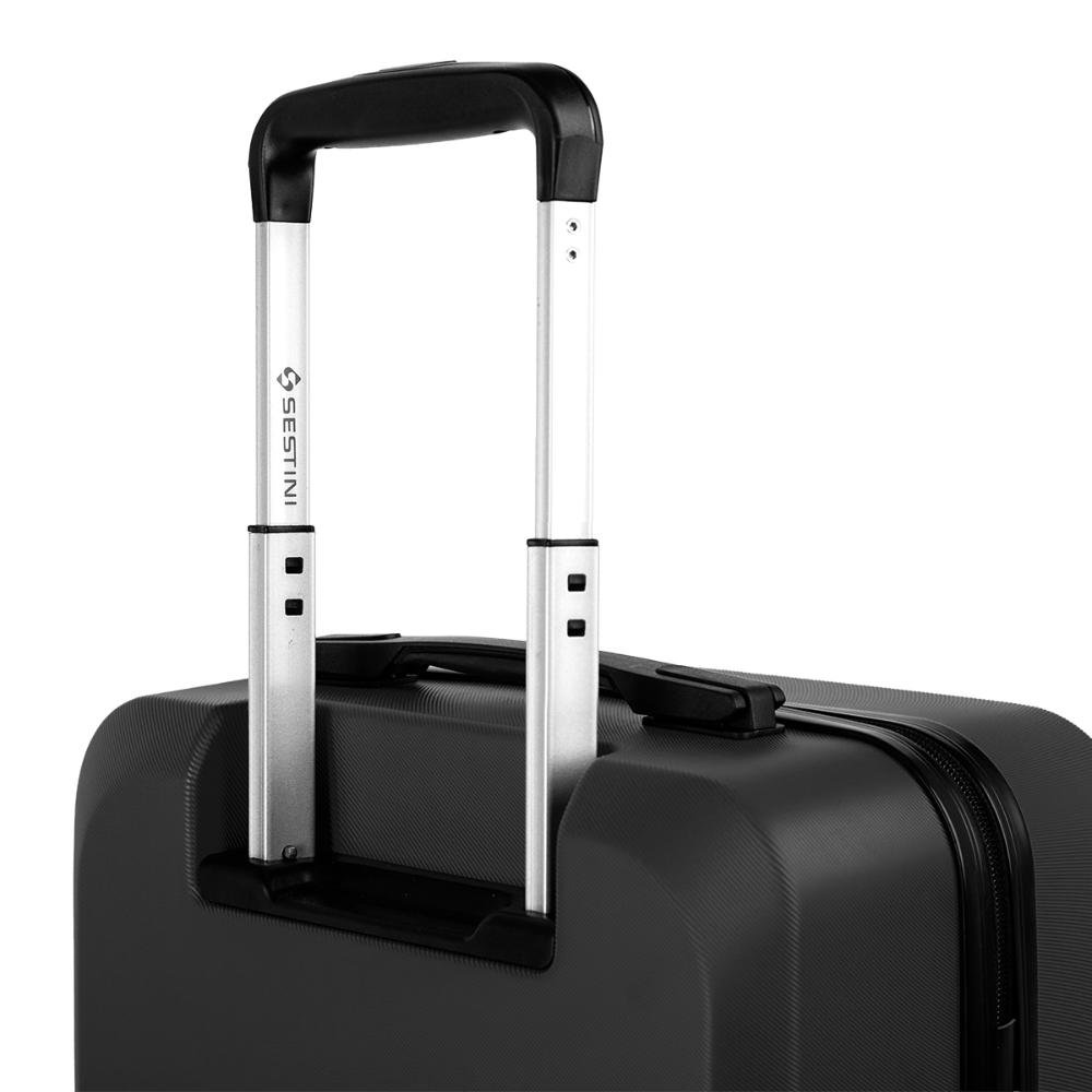 O carrinho embutido e as quatro rodas duplas com sistema de giro 360° permitem uma mobilidade excepcional, facilitando o deslocamento em qualquer direção. A alça de mão emborrachada proporciona conforto ao carregar a mala, tornando a experiência de viagem ainda mais agradável.
