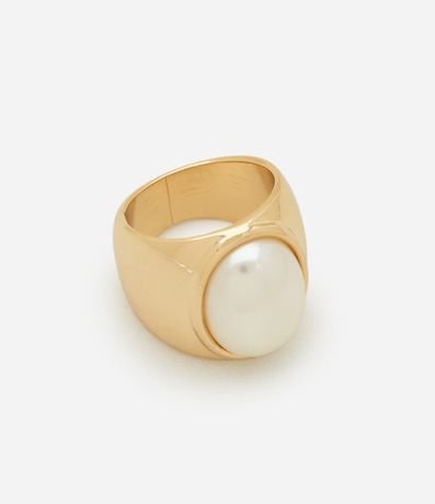Maxi anel feminino em metal reciclado mais sustentável. Possui estrutura larga, aplicação de uma pérola oval. O interior apresenta acabamento polido e bordas arredondadas.