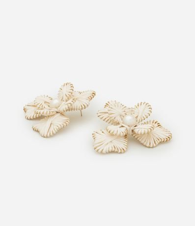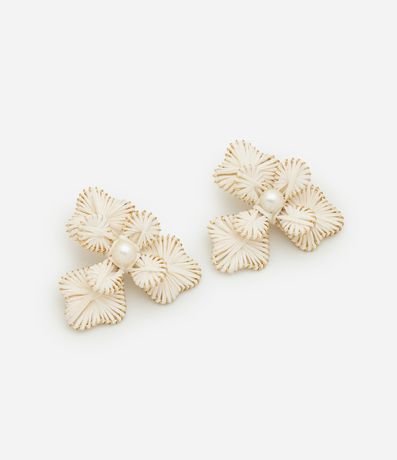 Maxi Brinco com Forma de Flor com Pérola e Ráfia