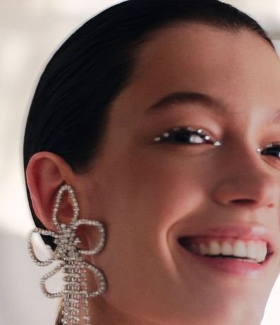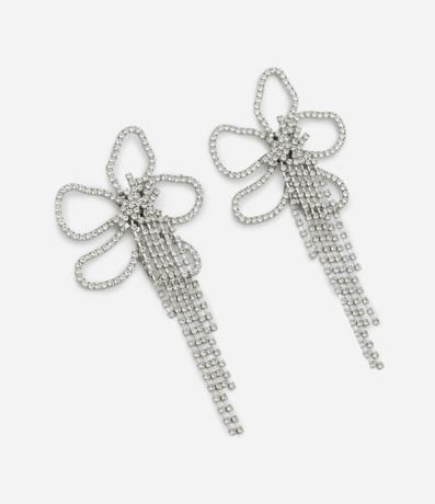 Ref: Maxi brinco em metal com formato de flor orgânica. Possui aplicações de strass e banho níquel.