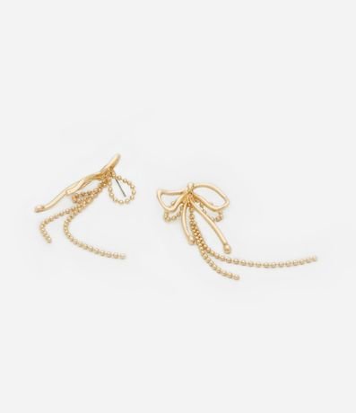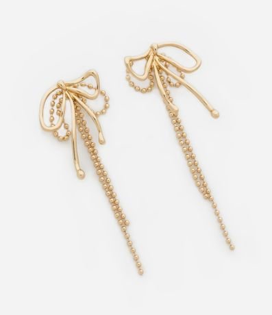 Maxi Brinco em Metal Formato Laço Duplo e Fio de Bolinhas
