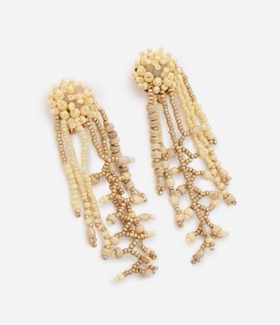 Ref: Maxi brinco em miçangas com cristais artificiais e franjinhas.