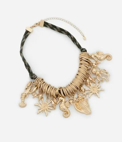 Ref: Maxi colar com corrente de cordão e pingentes fundo do mar. Produto confeccionado em metal reciclado.