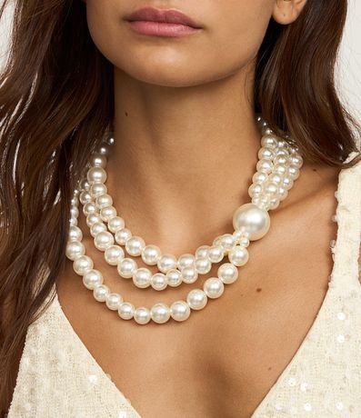 Maxi Colar em Perolas Artificiais com 03 Voltas