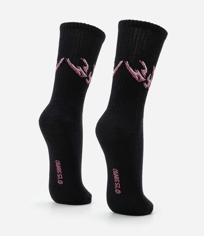 Ref: Par de meias masculinas, confeccionada em algodão mais sustentável, no modelo longo. Possui estampa tribal e Hello Kitty.