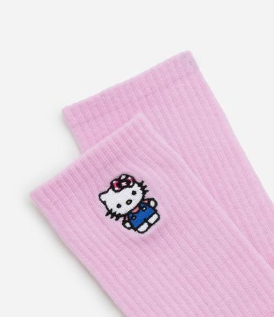 Ref: Meia cano alto confeccionada em algodão, com bordado Hello Kitty.