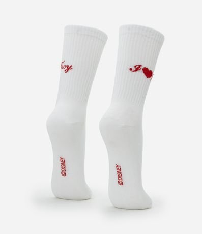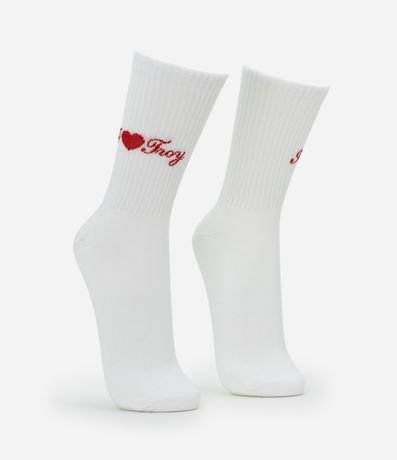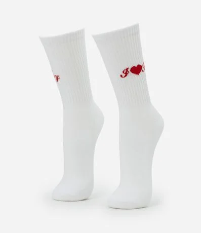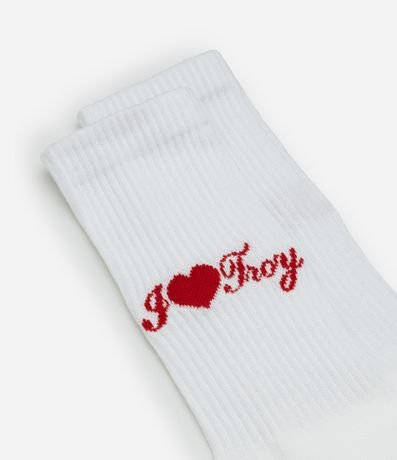 Ref: Par de meia masculina confeccionada em algodão mais sustentável, gola alta com estampa bordada com frase i love Troy, em referencia ao filme High School Music.