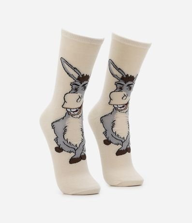 Ref: Divertida e cheia de estilo, a meia cano alto com estampa Burro do Shrek, é ideal para quem gosta de um visual descontraído e mais descolado. Produzida em algodão, a peça oferece um toque super macio e ótima respirabilidade aos seus pés.