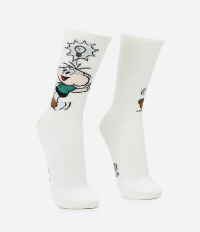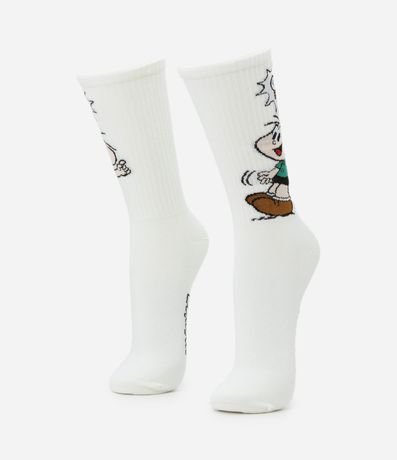 Meia Cano Alto em Algodão com Estampa Cebolinha Turma da Mônica