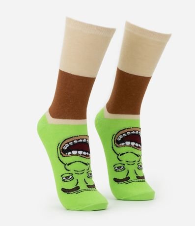 Ref: Meia cano alto confeccionada em algodão com boas práticas ambientais. Peça com estampa em bloco de cores com estampa do ogro mais querido o Shrek.