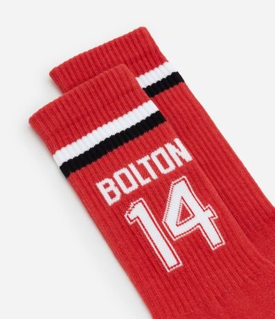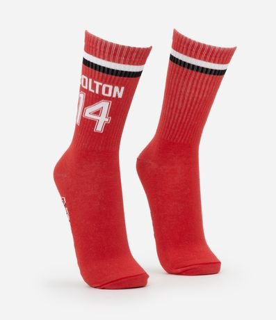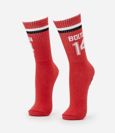 Ref: Meia masculina confeccionada em algodão, com cano alto e estampa Bolton em homenagem ao filme High School Musical.