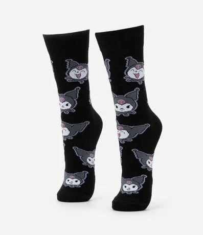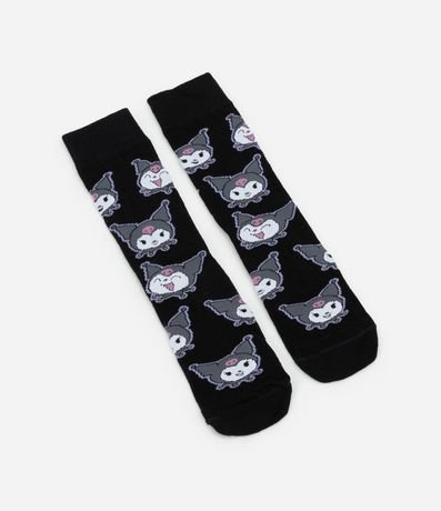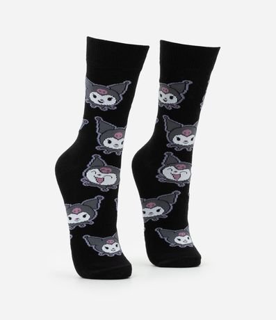 Ref: Meia feminina confeccionada em algodão mais sustentável, peça com cano alto e estampa divertida do rostinho fofo da personagem Korumi.