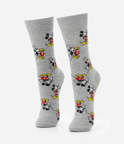 Par de meias longas de algodão com estampa do ratinho Mickey.