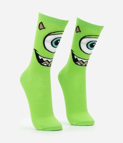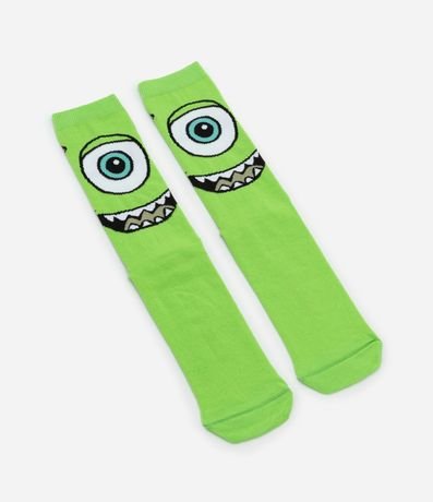 Ref: Meia cano alto masculina, confeccionada em algodão, com estampa Mike Monstros SA.