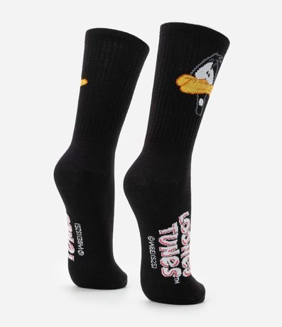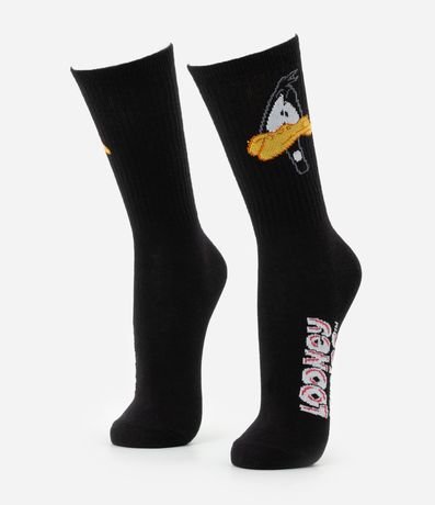 Ref: Par de meias masculino confeccionado em algodão com material mais sustentável. Peça no modelo cano alto com estampa do Patolino.