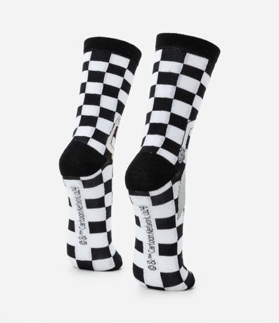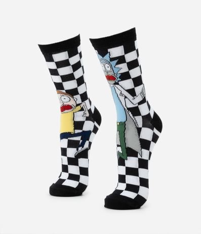Ref: Meia masculina, cano alto, com estampa quadriculada do desenho Rick e Morty.