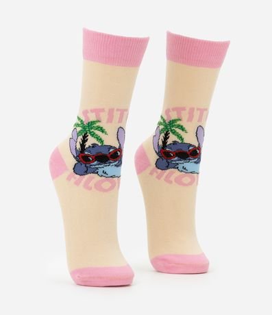 Meia Cano Alto em Algodão com Estampa Stitch Praiano Aloha