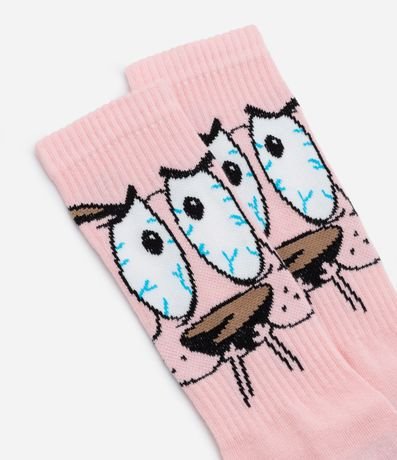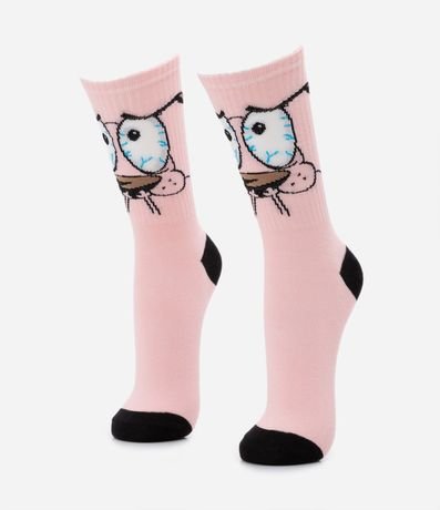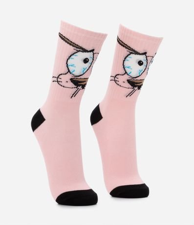 Ref: Meia masculina confeccionada em malha de algodão mais responsável, com cano alto e estampa do personagem Coragem.
