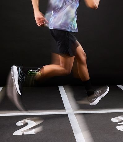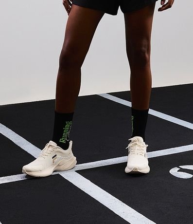 Ref: Par de meias esportivas com cano longo com textura, confeccionada em poliamida e com estampa em lettering Running Culture.
