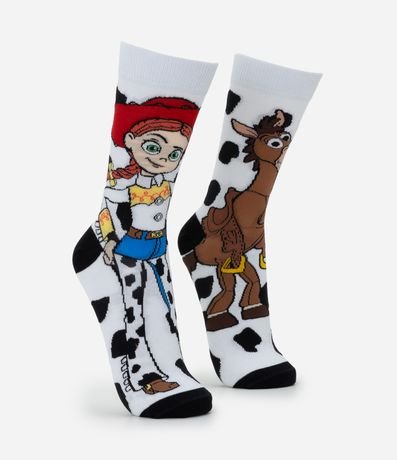 Ref: Meia cano longo confeccionada em algodão de certificado BCI, garantindo conforto e sustentabilidade. Possui estampa divertida da personagem Jessie e detalhes que remetem ao universo Toy Story, trazendo estilo e personalidade para o look.