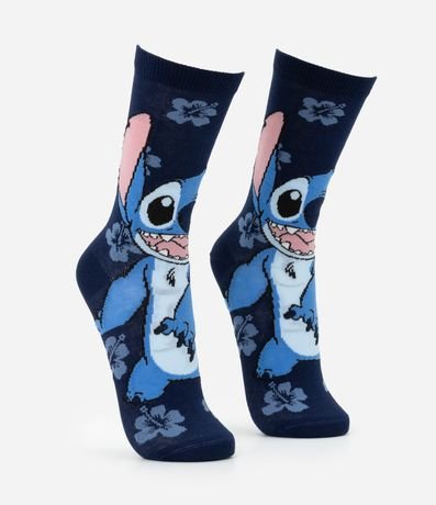 Ref: Meia masculina confeccionada em algodão mais sustentável. Possui cano longo e estampa divertida do personagem Stitch.