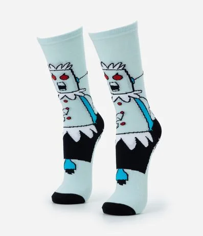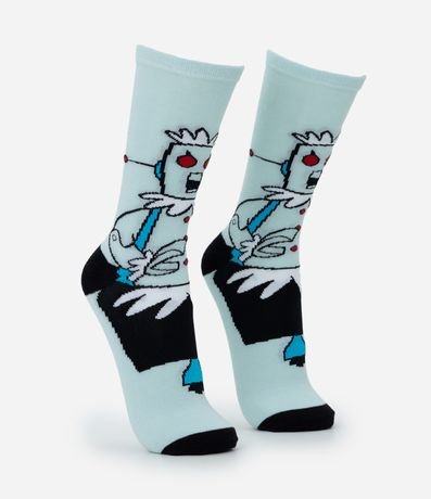 Ref: Par de meias masculino confeccionada em algodão certificado BCI. Possui modelo cano médio, estampa do personagem Rose, a robô da série Os Jetsons, aplicada ao longo do cano. Conta com punho ajustado que ajuda na fixação. Ideal para uso diário, oferecendo conforto e bom ajuste aos pés.