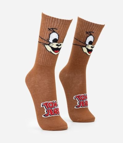 Meia confeccionada em algodão com estampa do personagem Jerry, trazendo toque divertido ao visual. Possui cano médio, ajuste confortável e boa respirabilidade para o uso diário. Ideal para compor looks casuais, confeccionado em algodão de certificado BCI.