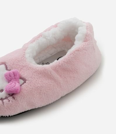 Meia infantil home socks confeccionada em fleece macio, com interior peluciado que aquece e traz conforto ao uso em casa. Possui modelagem sapatilha, solado antiderrapante e bordado Hello Kitty, personagem da Sanrio símbolo da cultura kawaii, com laço 3D aplicado.