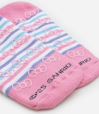 Ref: Meia sapatilha, com tira de elástico para segurar o pézinho, listrada e com estampa Hello Kitty.