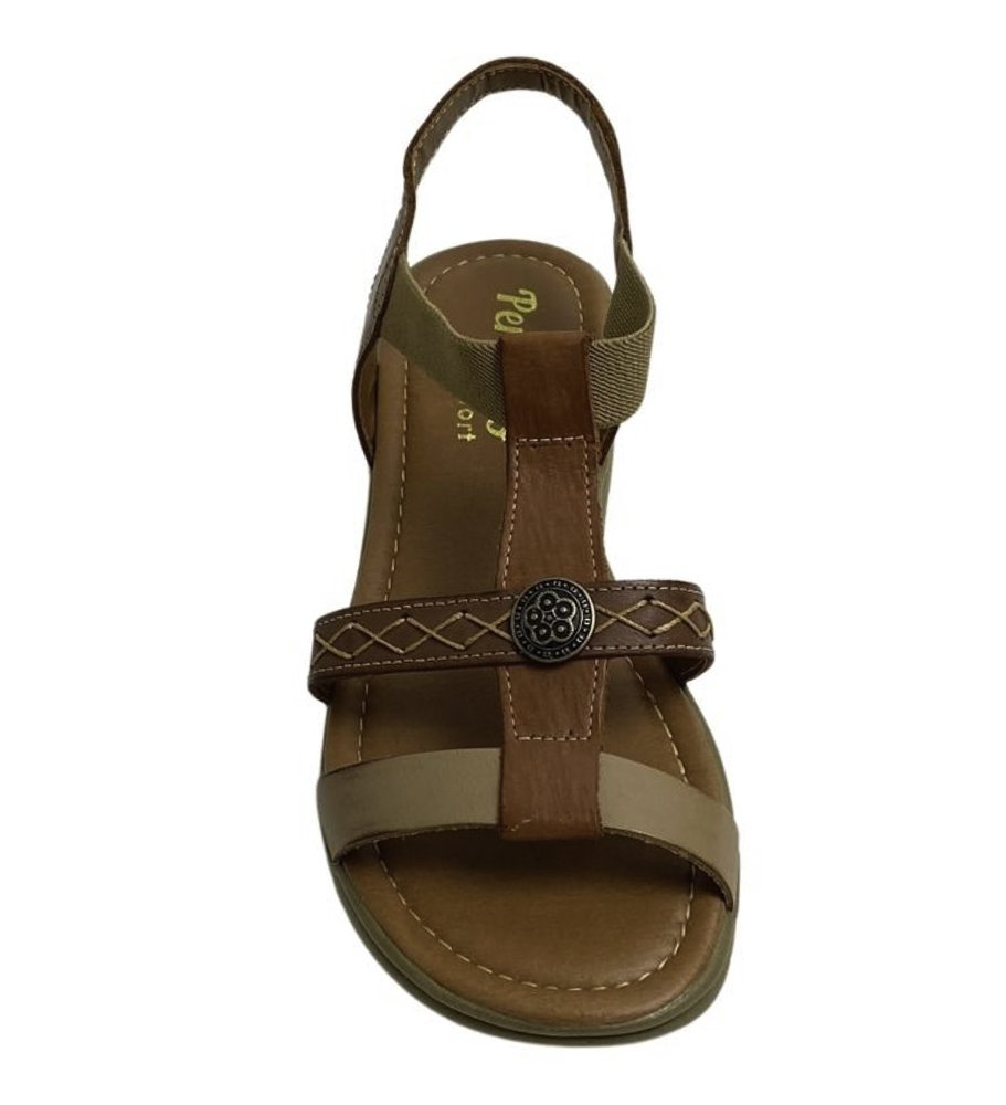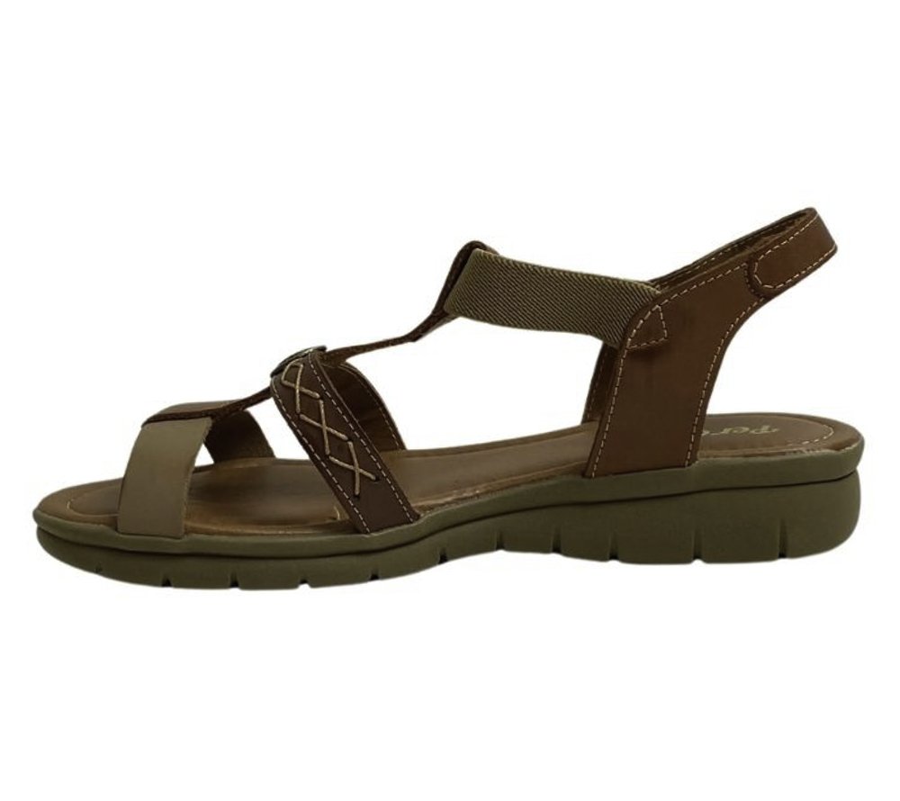 Sandália Mercanti Fiorentini em couro, com cabedal moderno e detalhe metalizado que acrescenta charme, além de tira elástica que garante praticidade no calce e conforto ao caminhar.