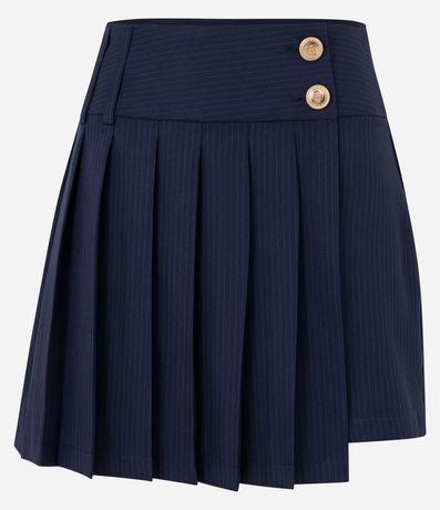 Mini saia alfaiatada com Dois Botões no Cós e Pregas Frontais