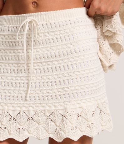 Ref: Saia curta de tricô com cintura média e babadinha na barra.