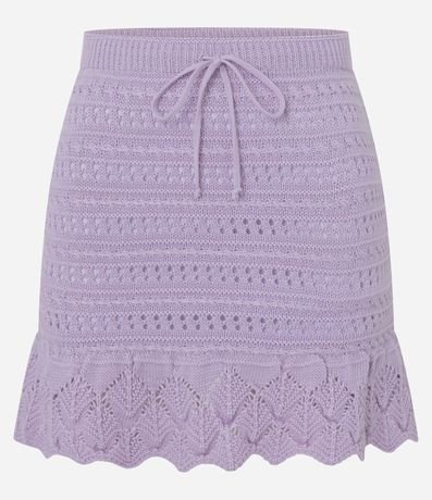 Ref: Saia curta de tricô com cintura média e babadinha na barra.