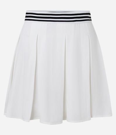 Ref: Mini saia plissada, confeccionada em viscose certificada com boas práticas ambientais. Cós com listras contrastantes e sem estampa.