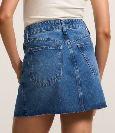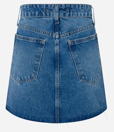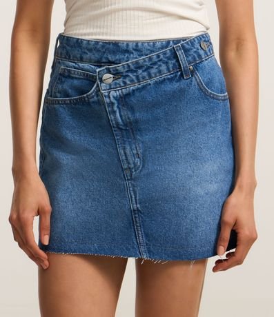Ref: Mini saia confeccionada em jeans com algodão bci mais sustentável, fechamento deslocado com passantes e bolsos.