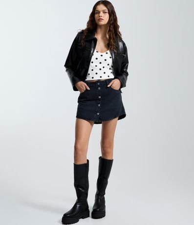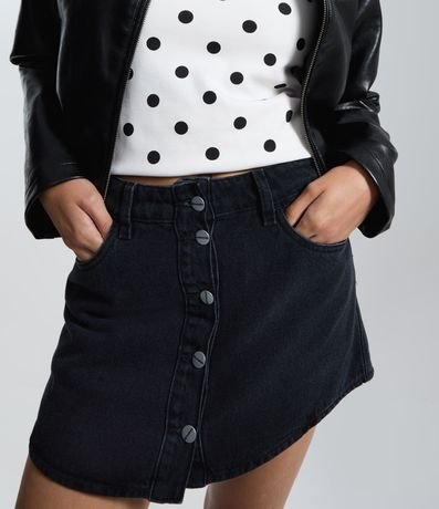 Ref: Saia mini confeccionada em jeans de algodão certificado BCI, com cintura média e abotoamento frontal completo. Possui bolsos frontais funcionais, passantes no cós e barra curva, além de estrutura encorpada que mantém firmeza e valorização do caimento.