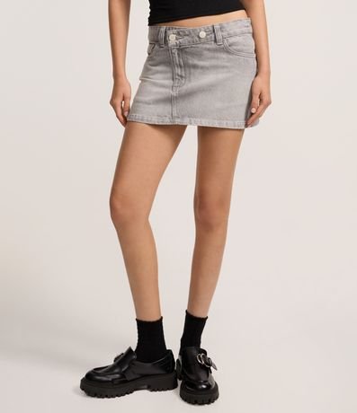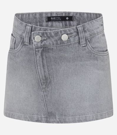 Ref: Minissaia confeccionada em jeans, com passantes e botões no cós transpassado. Este produto possui material mais sustentável em sua composição, sendo ambientalmente mais responsável.