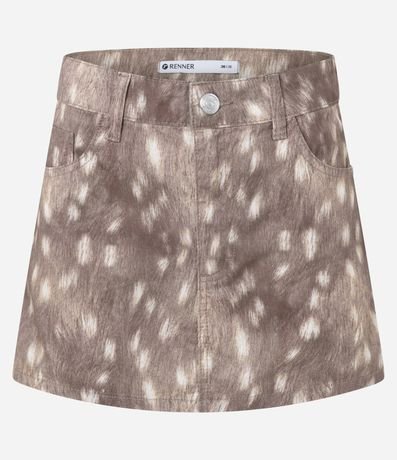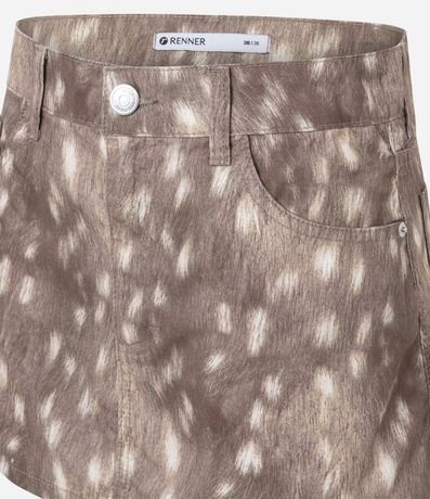 Ref: Minissaia confeccionada em sarja de algodão com estampa animal print bambi, trazendo visual moderno e marcante. Possui cintura baixa, bolsos funcionais e fechamento frontal por botão e zíper, garantindo praticidade no vestir. Confeccionada em algodão certificado BCI.