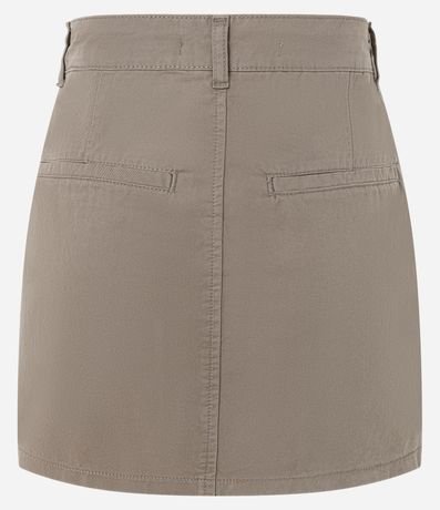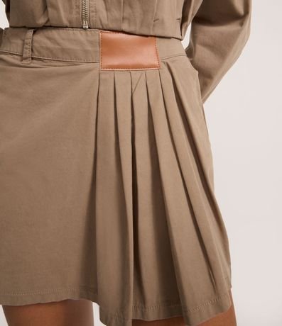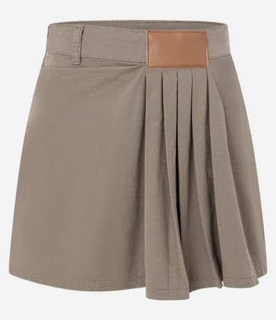 Ref: Minissaia curta de sarja com pregas frontais e detalhe estilo etiqueta. Este produto possui Algodão Agroecológico Instituto Lojas Renner em sua composição, sendo ambientalmente mais responsável.