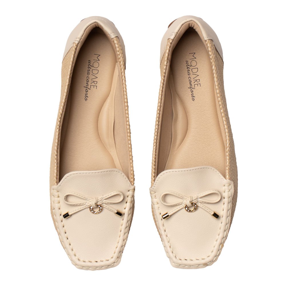 Mocassim Feminino Modare Tecido Tramado Laço Bege
