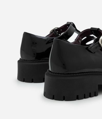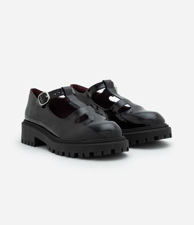 Ref: Mocassim feminino em PU com design mary jane. Possui recortes arredondados no cabedal, tira ajustável com fivela metálica e solado tratorado robusto que traz destaque visual.