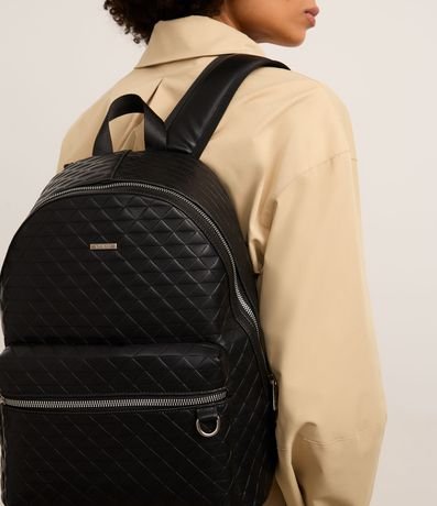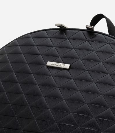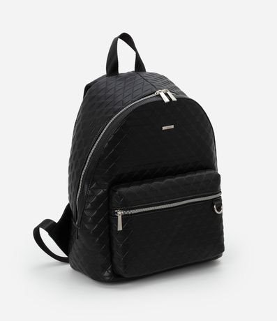 Ref: Mochila feminina confeccionada em material sintético com alça de mão, com fechamento por zíper, bolso externo, textura e detalhes de níquel.