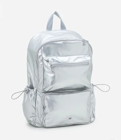 Mochila em PU Metalizado com Bolsos Frontais e Laterais