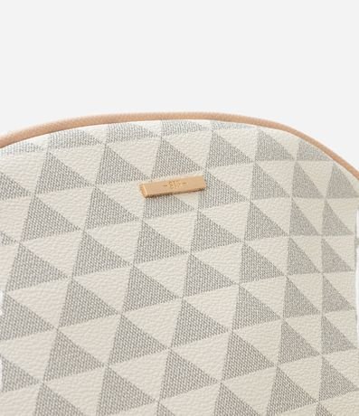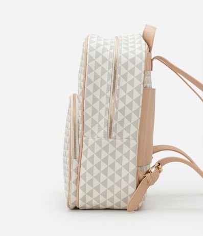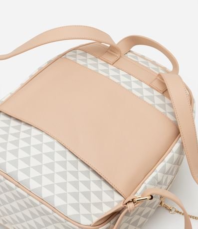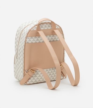 Ref: Mochila confeccionada em PU com alça de mão e alças de ombro com fechamento por zíper, bolsinho frontal com zíper, estampa de triângulos e pendente de pompons.