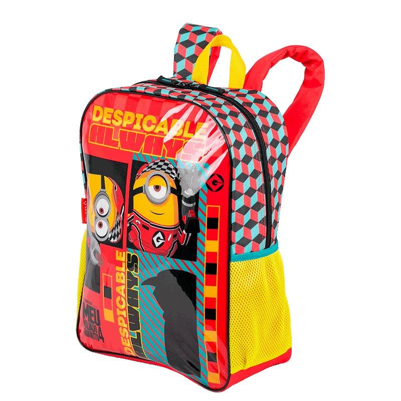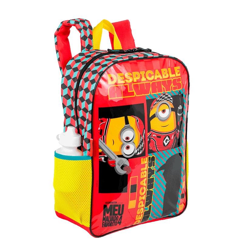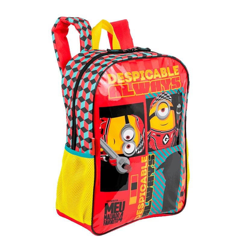Ref: Os Minions invadiram a sala de aula e estão prontos para mais um ano de aventura e diversão! A Mochila Grande Meu Malvado Favorito 4 M - Colorido traz de volta as criaturas amarelas mais divertidas nessa mochila inspirada no 4° filme da franquia. O item possui um amplo compartimento principal para organização dos pertences, estampa exclusiva, boldos laterais em elásticos para squeeze, alças de costas espumadas e tag de identificação do pertence.